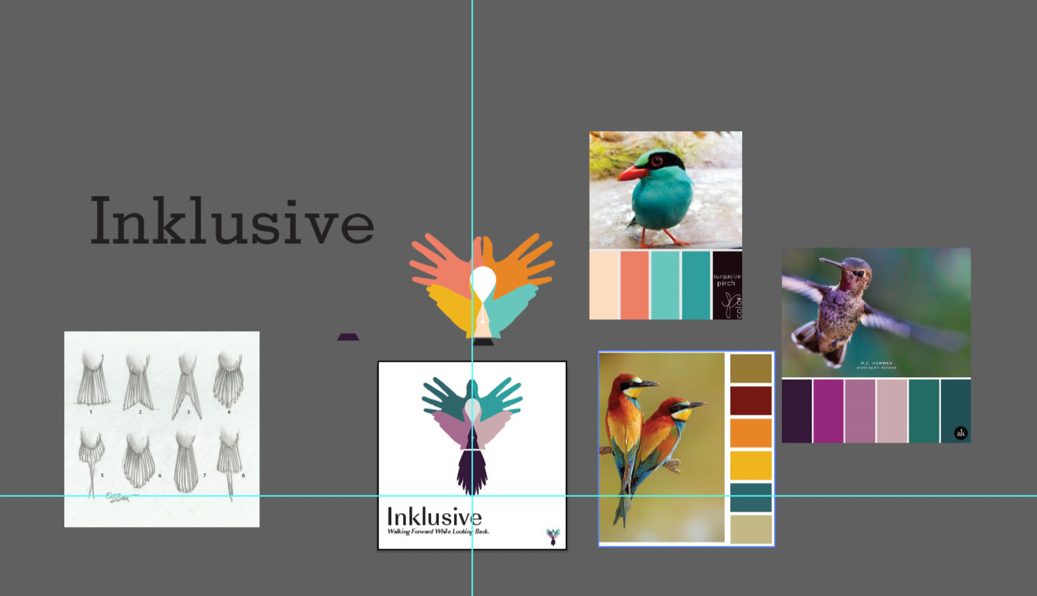 For a group project, I was tasked to create a logo representing us. Our focus in the class was history, specifically design history from cultures that have been traditionally pushed aside or oppressed. We combined the words ink (As in penmanship) and inclusive. Our tagline "Walking forward while looking back" means that while we look towards the future, we look back on the history that has captured the writing on the walls of our ancestors.For the logo itself, I used hands, different colored hands symbolizing diversity. I put them together as wings of a birds, symbolizing that when people share their cultures and histories, then anything is possible.