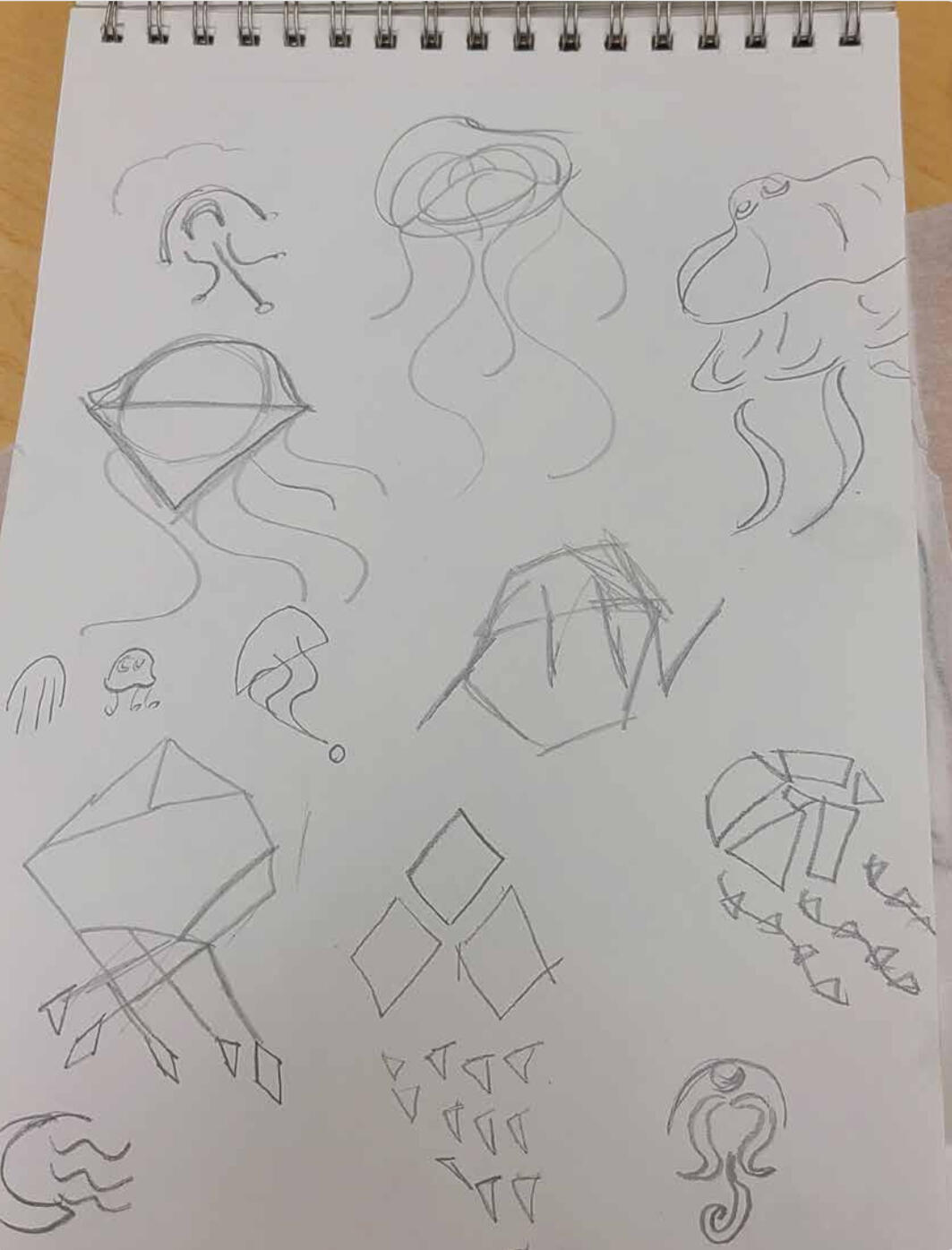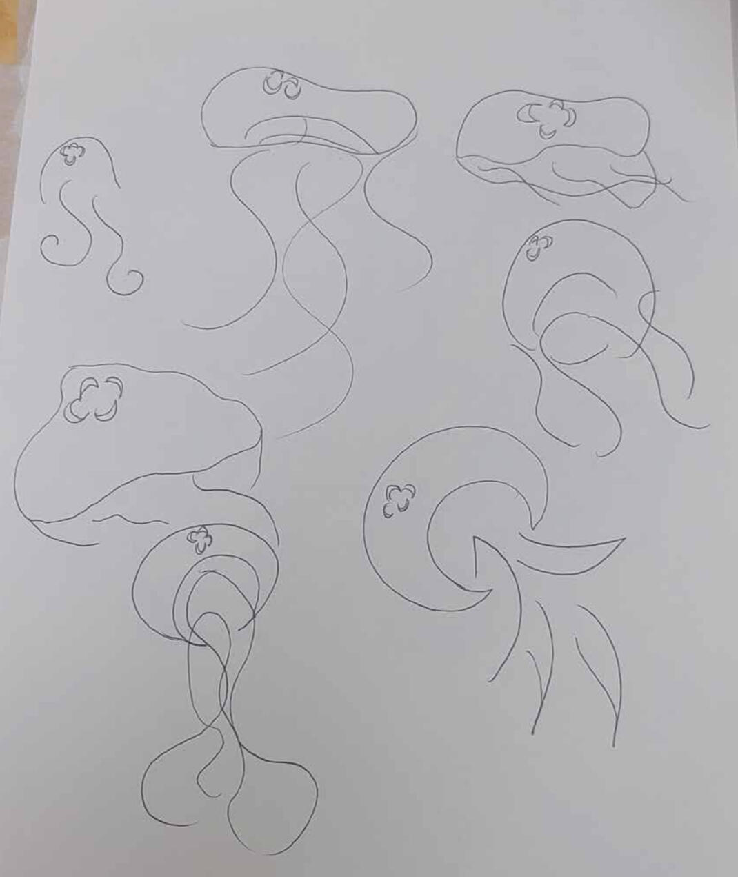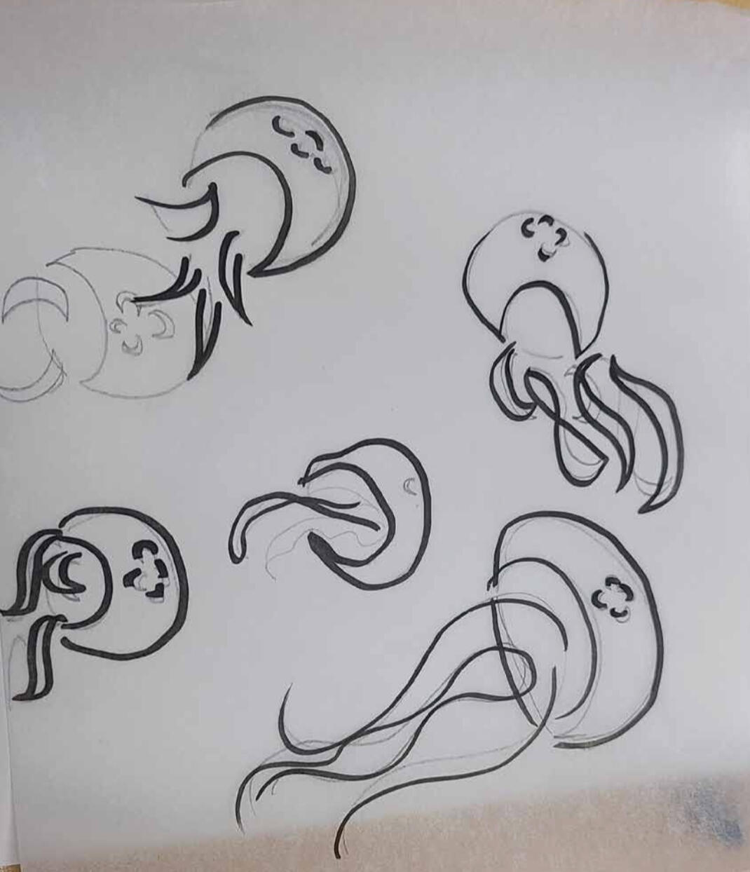 For one of my final projects, we were assigned to choose a "Spirit Animal" to develop a logo and some branding around. I chose the moon jellyfish because it is one of my favorite animals, and I love aquatic themes. Moon jellies don't have the longest tendrils like other jelly fish, so in some sketches I played around with the shape if the tentacles to make it more interesting.