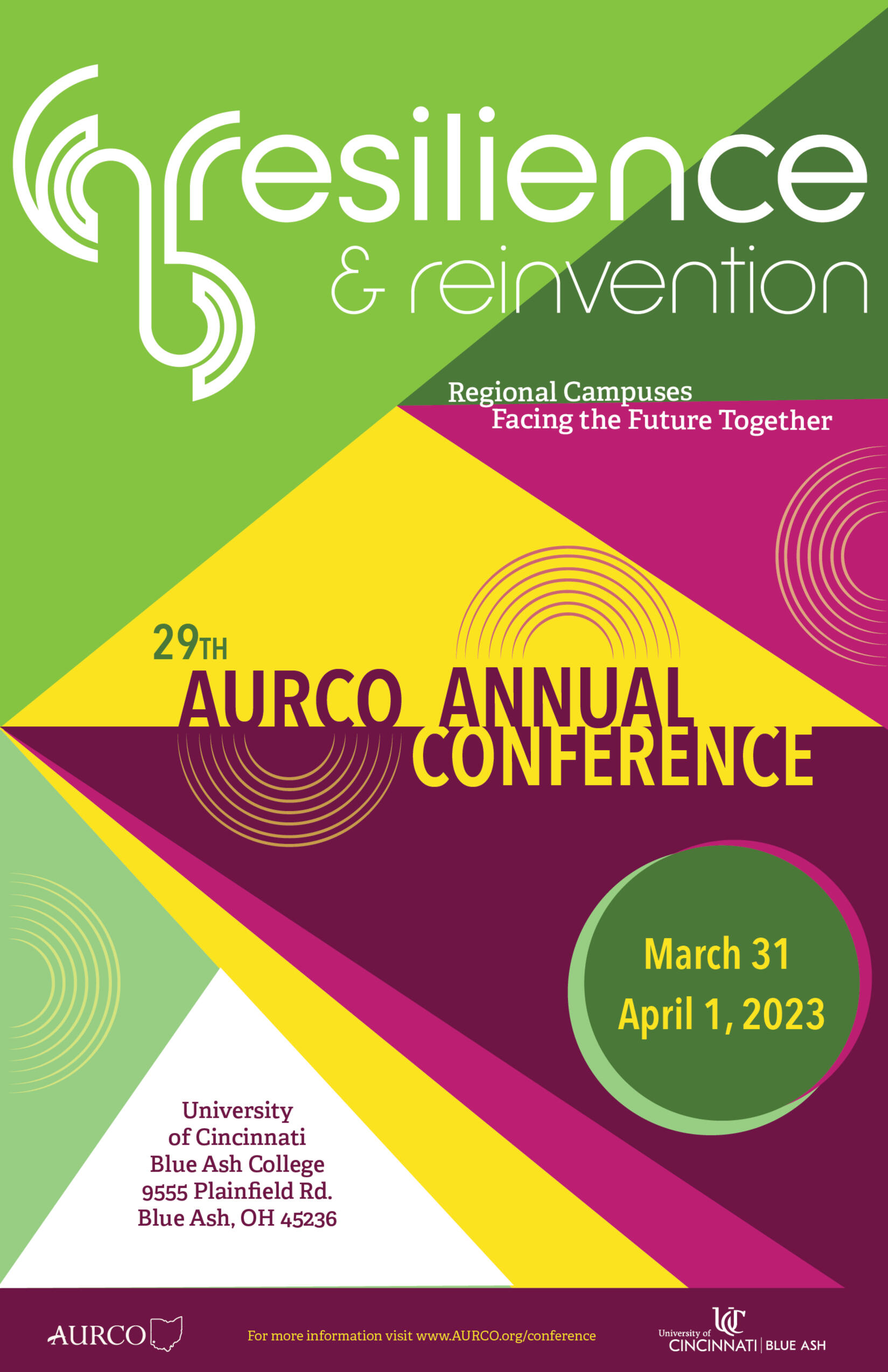 In 2021, AURCO, an organization for regional campuses in Ohio, approached my class for possible branding for the 2023 conference. We were given the tagline "Resilience and Reinvention".